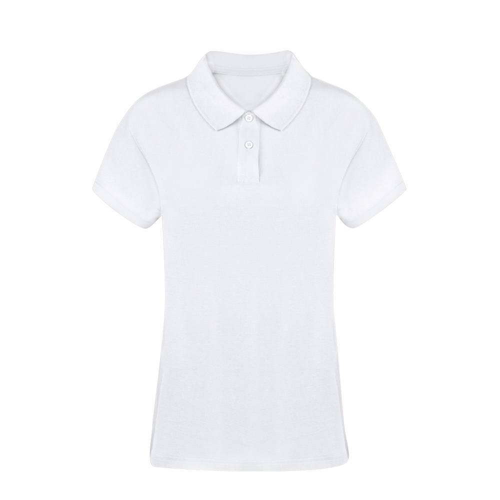 Dames piqué poloshirt in het wit. Van 100% katoen, materiaal 220 g/m2. Met twee bijpassende knoopsluitingen en zijopeningen aan de zoom. Gemakkelijk verwijderbaar label. Maten S, M, L, XL, XXL, 3XL.