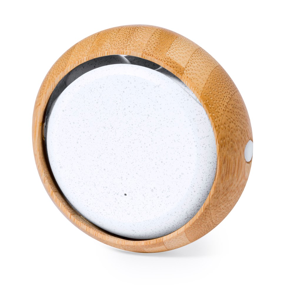 Bluetooth® 5.0-oortelefoons, elk met een 30 mAh lithiumbatterij. Ergonomisch ontworpen, met geïntegreerde touch control-knop op het oorstuk, bijpassend 300mAh-oplaadstation en LED-laadstatuslampje. Handsfree en oplaadbaar, inclusief Type C-kabel. Verpakt in een originele openklapbare koffer, met een oplaadbasis van bamboe en tarwestro en een rond bamboeframe, gepresenteerd in een aantrekkelijke kraft-designdoos. Materialen zoals bamboe stimuleren het gebruik van natuurlijke grondstoffen, waardoor de uitstoot van verontreinigende stoffen wordt verminderd. Het is afkomstig van een zeer resistente en veelzijdige plant met een snelle groei en regeneratie, waardoor het een uitstekend alternatief is voor traditioneel hout. De capaciteiten die worden weergegeven in al onze externe hulpbatterijen zijn reëel, ze bevatten allemaal niet-gerecycleerde batterijen van klasse A, met een levensduur van minstens 500 oplaadcycli, en voldoen aan de CE-voorschriften. Bovendien worden ze vervaardigd volgens de RoHS-normen en in overeenstemming met de volgende veiligheidseisen: Beveiligingssysteem tegen overbelasting van de powerbank. Compleet ontladingsbeveiligingssysteem, dat de duurzaamheid van de powerbank vergroot. Blokkeersysteem om kortsluiting te voorkomen. Systeem voor constante laadoverdracht, in overeenstemming met de capaciteit van het doelapparaat.