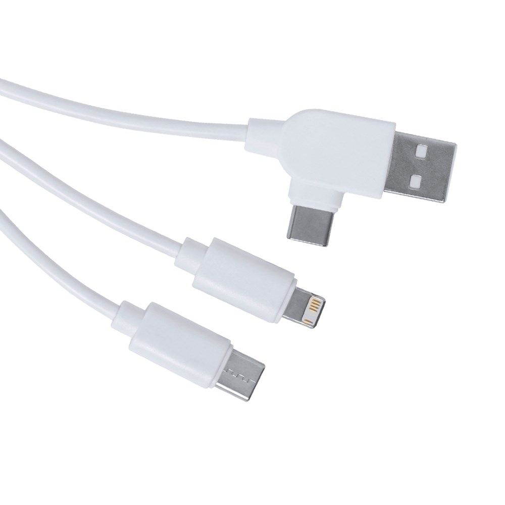 Oplaadkabel gemaakt in combinatie van bamboe en gerecycled materiaal uit melkpakken. Inclusief dubbele USB/Type C-aansluiting + Micro USB-, Type C- en Lightning-aansluitingen. Met originele transportring en logo van gerecyclede melkpakken. Gepresenteerd in een individuele doos in kraft-design , inclusief beschermpapier 5V DC 2,4A.