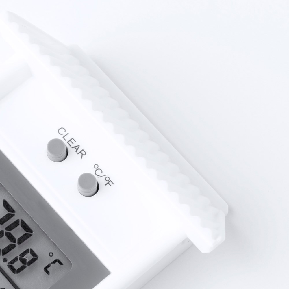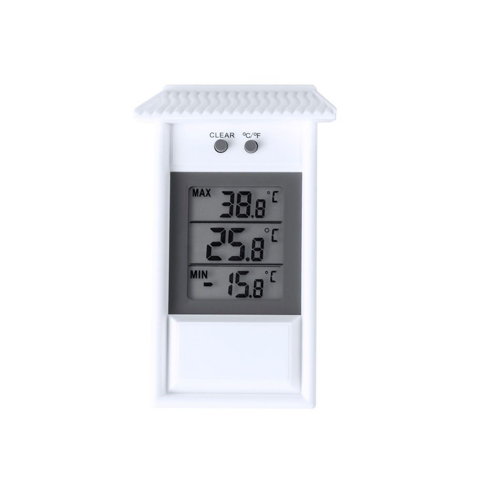 Praktisch en hangend buitenweerstation in de vorm van een huis. Met LCD-display voor een snelle aflezing van de maximale, gemiddelde en minimale temperatuur. Met een RESET-knop bovenop en de mogelijkheid om te meten in ºC of ºF. Aangedreven door 2 AAA-batterijen (niet inbegrepen). Met instructies in het Engels en Spaans en individueel gepresenteerd in een doos met kraftdesign.