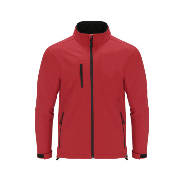 RPET Soft jack gemaakt in 3 lagen, 340 g/m². Met 8000 mm membraan, waterdicht en ademend. Buitenkant van Soft Shell en binnenkant van zwart microfleece. Met buitenzak op de rechterborst en twee zijzakken met ritsen. Met centrale ritssluiting en omgekeerde ritsen op de zakken, inclusief zwarte trekkoorden. Raglanmouwen met klittenbandsluiting aan de manchet in het zwart. Bijpassende kinbeschermer en verstelbare tailleband met elastische band en stopper. RPET-label op de zoom van het kledingstuk.