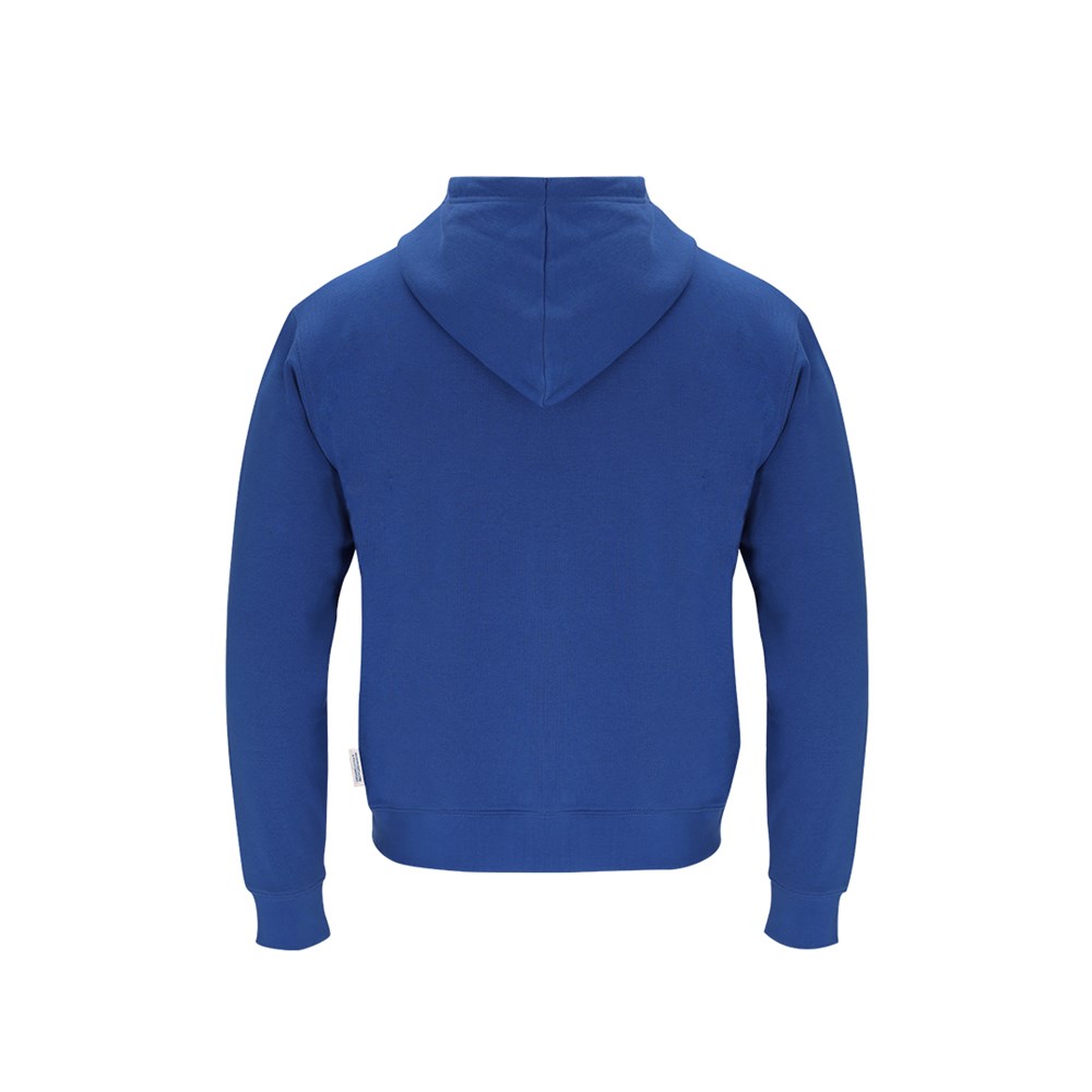Unisex hoodie met rits van biologisch katoen en gerecycled polyester, in zacht fleece van 280 g/m². Met dubbele gevoerde capuchon, verstelbare ronde trekkoorden - met bijpassende stoppers - en metalen oogjes. Elastische ribgebreide manchetten en tailleband, en voorzak met kangoeroe-stijl. Verborgen metalen ritssluiting, met versterkte naadafdekking op de kraag. Inclusief opvallend ecologisch label.