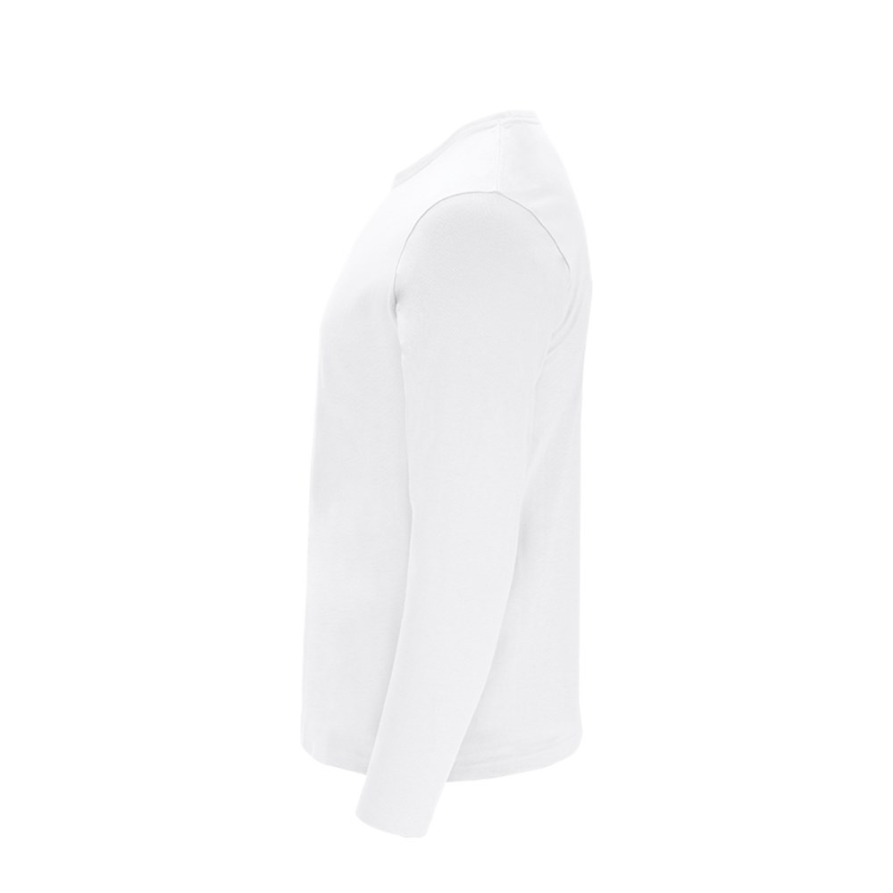 Volwassen maat, longsleeve T-shirt in de kleur wit, zacht en prettig aanvoelend in 100% katoen, 160 g/m² glad jersey. Gemaakt in tubulaire stof, met 1x1 ribgebreide ronde hals en bijpassende, versterkte naadafdekking in het wit.