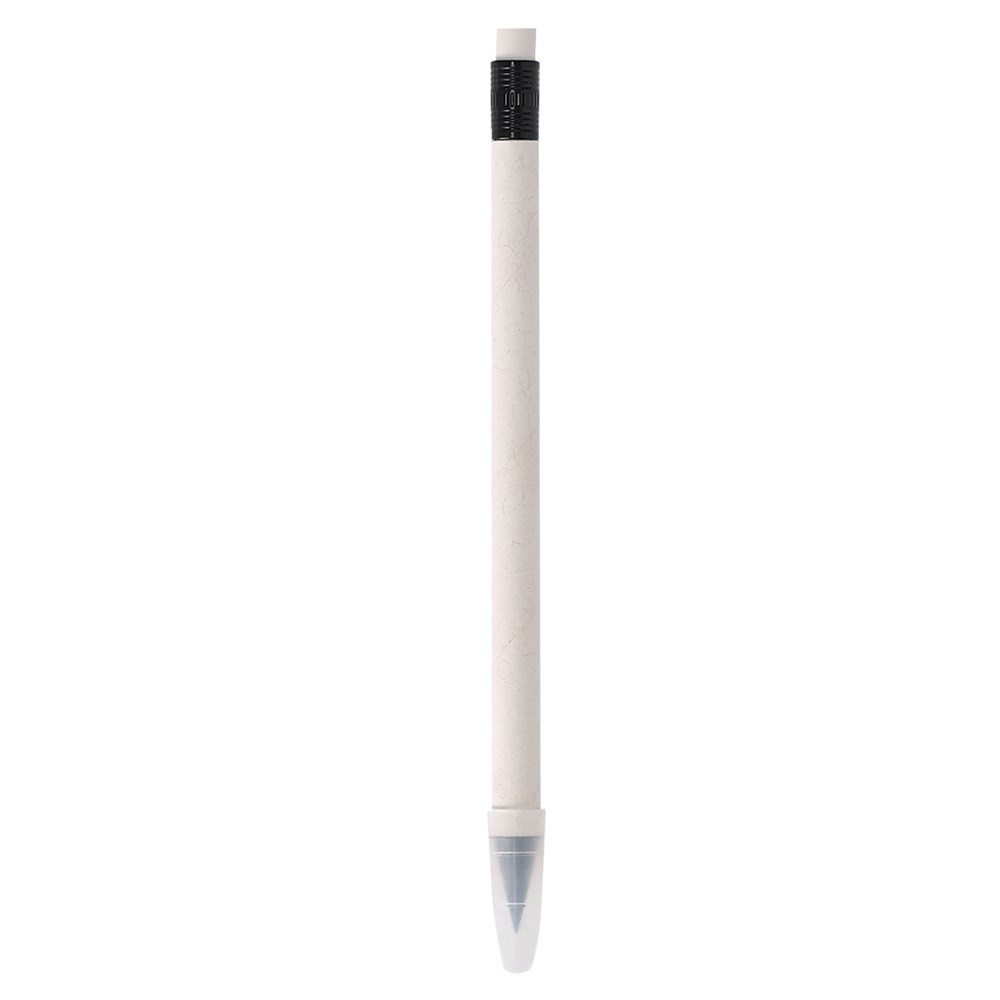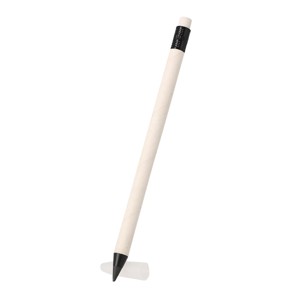 Eternaal potlood gemaakt van gerecycleerde melkpakken. Herbruikbaar en met oneindig schrijven. Inclusief gum aan de bovenkant van het potlood. In wit, met zwarte details. Met gerecycled melkpaklogo op het vat.Melkpakken bestaan voornamelijk uit karton en aluminium. Tijdens het recyclingproces worden de verschillende verpakkingsmaterialen gescheiden voor hergebruik en herbestemming, waardoor ze bijdragen aan het oneindige pad van de circulaire economie. Dit materiaal staat bekend om zijn hoge recycleerbaarheid, evenals om zijn lichtgewicht en bestendigheid.
