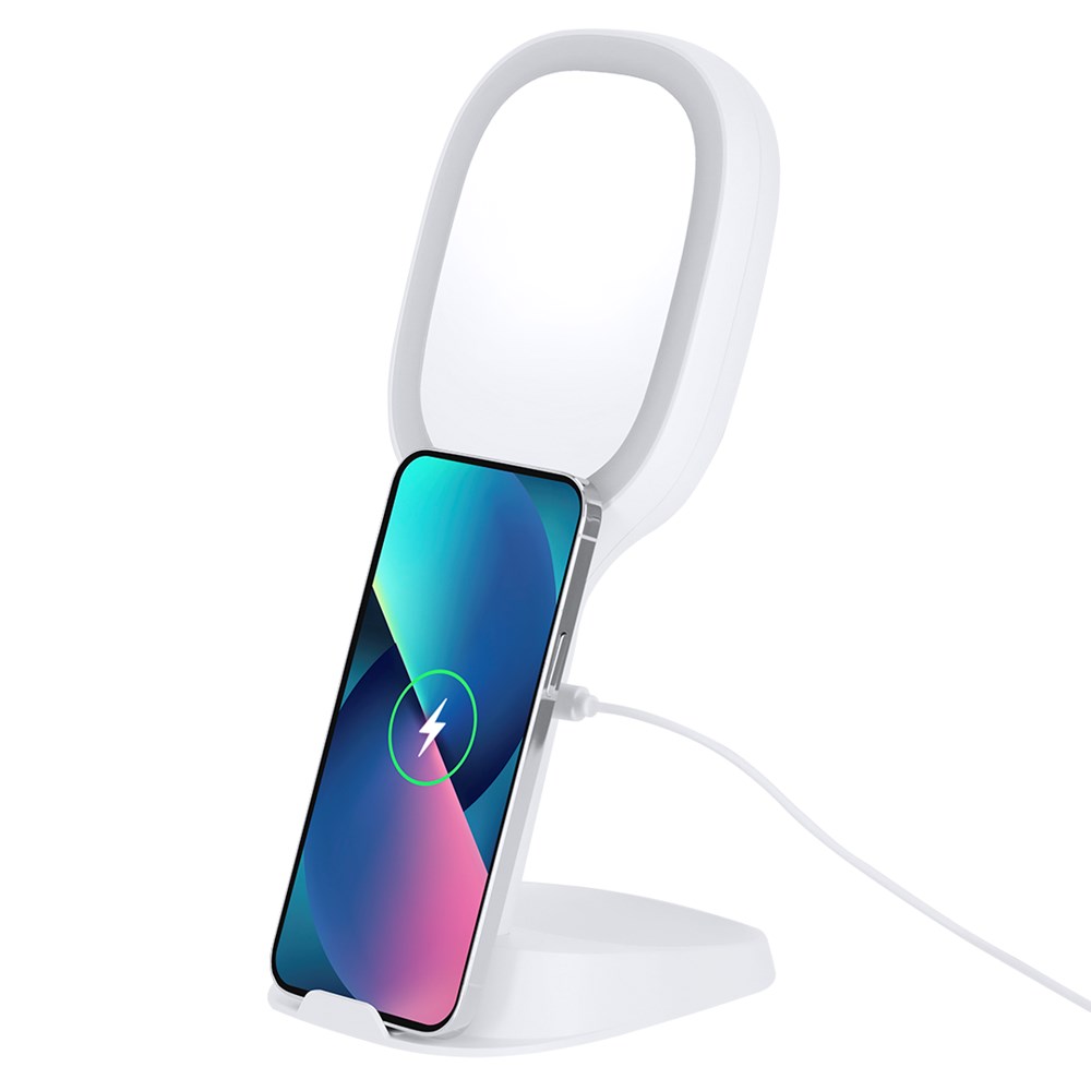 Multifunctionele spiegel met veelzijdige functies:- Een 1x spiegel aan de ene kant en een 5x vergrotende spiegel aan de andere kant.- 15W draadloze oplader.- Smartphonehouder.- Compartiment voor kleine objecten.Geproduceerd volgens RoHS-standaarden en in overeenstemming met de volgende veiligheidseisen:Oververhittingsbeveiligingssysteem.Beveiligingssysteem tegen overladen.Blokkeersysteem om kortsluitingen te voorkomen.