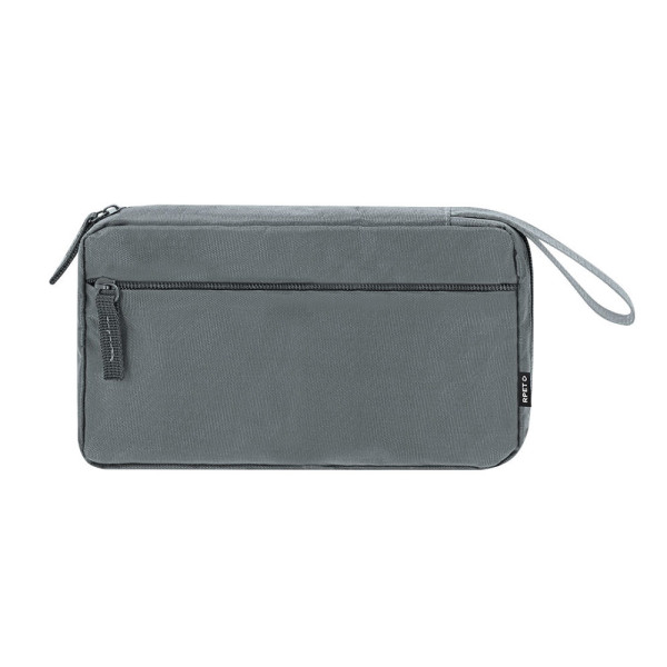 Organiser koffer gemaakt van 900D RPET. Hoofdvak met dubbele metalen ritssluiting voor volledige opening en meerdere binnenvakken ideaal voor het opbergen van kabels: 3 vakken met elastische banden en 1 met ritssluiting. Het omvat ook een buitenvak met een onzichtbare ritssluiting en een handvat voor gemakkelijk dragen. Inclusief RPET-label.Het RPET-materiaal is gemaakt van gerecycled plastic, waardoor het hergebruik van plastic afval wordt bevorderd en bijdraagt aan de duurzaamheid van de planeet.