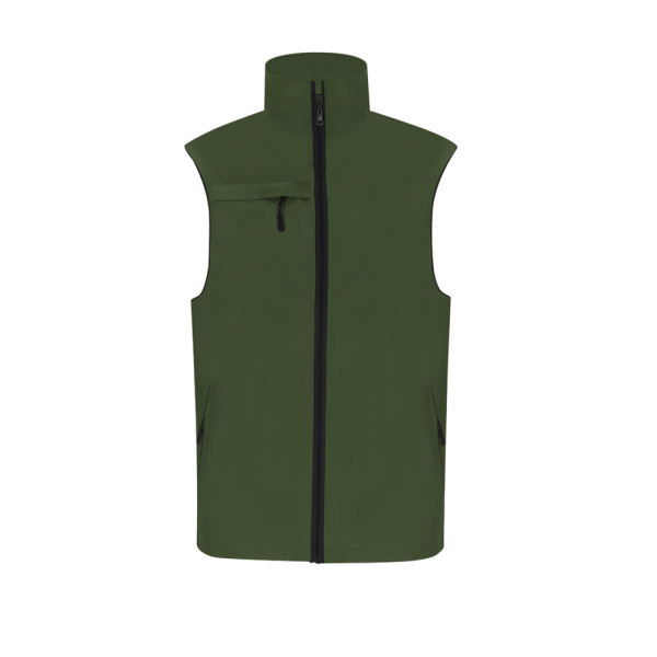 Unisex vest van lichtgewicht, ademende stof met witte mesh voering. Zwarte ritssluiting aan de voorkant en zilveren ritstrekker. Inclusief een buitenzak op de rechterborst en twee zijzakken met zwarte ritsen en trekkers. Voorzien van een halve maan aan de binnenkant van de kraag.