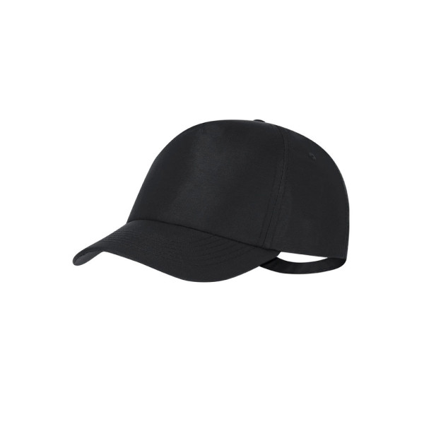 Sportpet van vijf panelen in RPET polyester met UV50-bescherming. Aanpasbare metalen gespsluiting...meer
