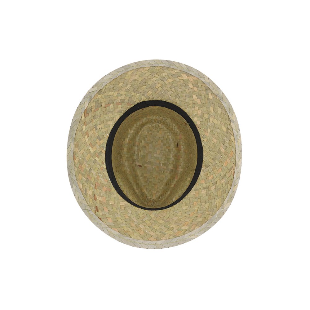Strohoed. Gemaakt van gevlochten stro in een natuurlijke groene kleur. Inclusief binnenband voor comfort.