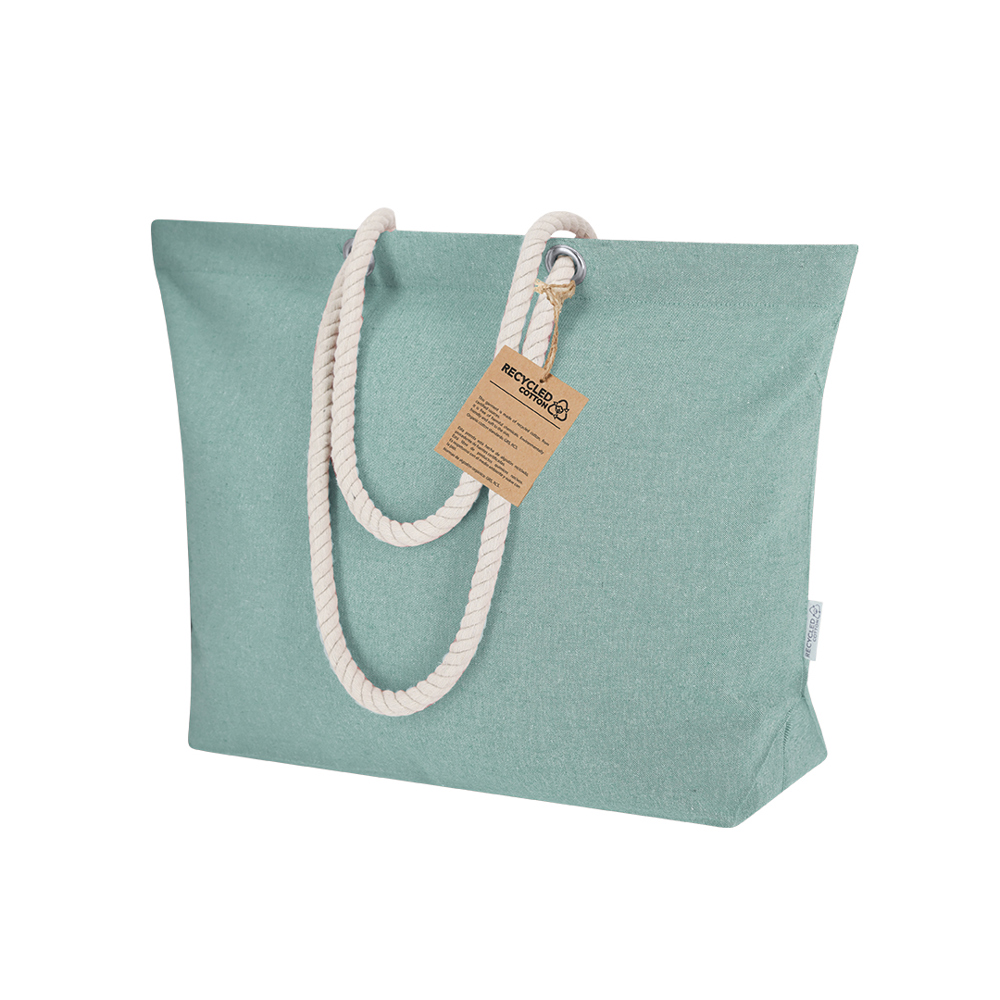 Tas gemaakt voornamelijk van gerecycled katoen van 220 g/m2. Met plooien en lange handgrepen van katoen in natuurlijke kleur en vlechtontwerp. Inclusief kenmerk gerecycled katoen.