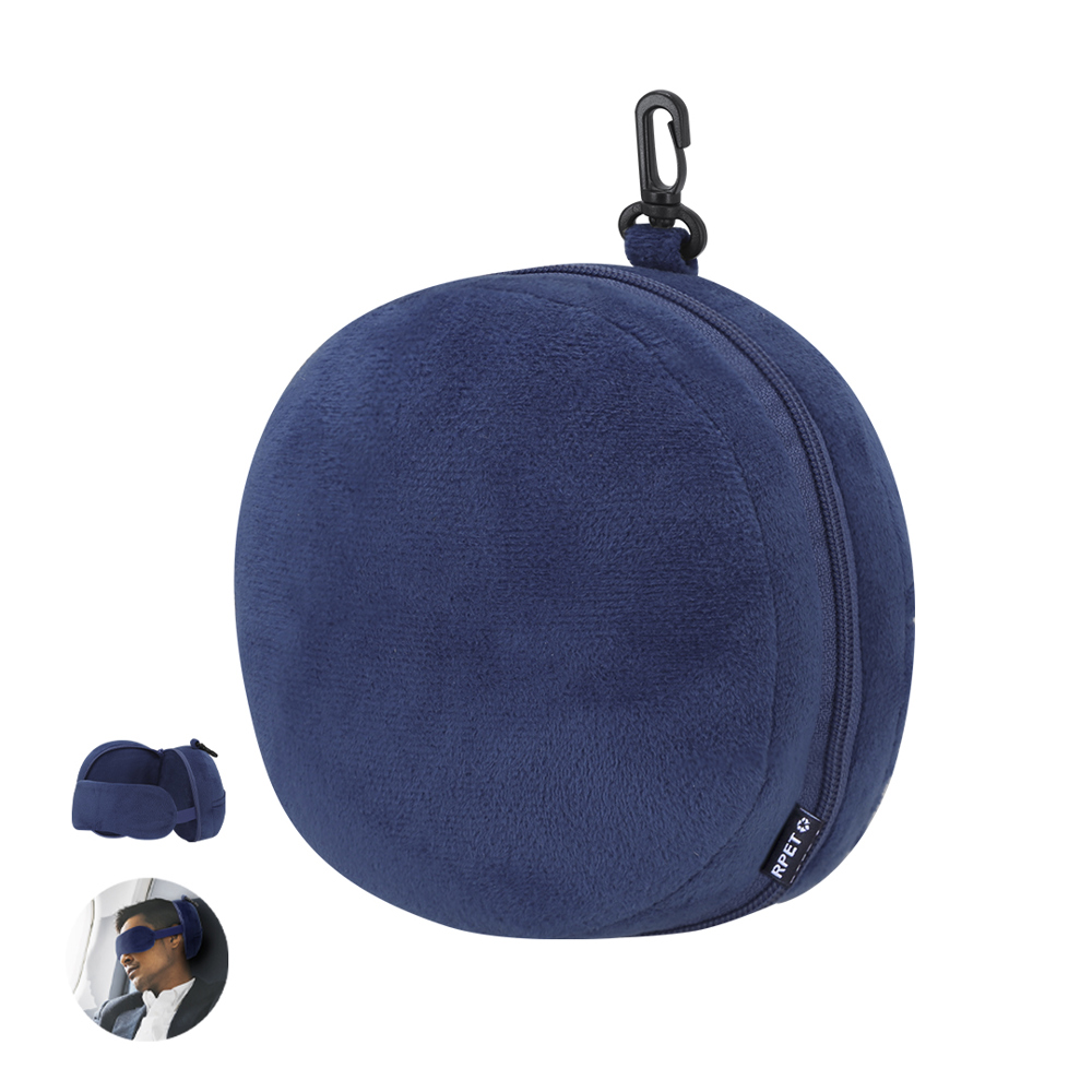 Reiskussentje met oogmasker, ideaal voor reizen, gemaakt van zacht RPET materiaal.Bevat een aangepast binnenmasker met twee elastische banden in bijpassende kleur voor meer comfort en rust tijdens het reizen. Het heeft een zachte opvouwbare hoofdkussen met rits, wat opslag vergemakkelijkt. Bovendien heeft het een praktische externe zak en een zwarte plastic karabijnhaak, waarmee je het gemakkelijk kunt vervoeren.Deze accessoire combineert functionaliteit, compact ontwerp en past perfect in je reizen.RPET materiaal is gemaakt van gerecycled plastic, om zo hergebruik van plastic afval te bevorderen en de duurzaamheid van de planeet te helpen.