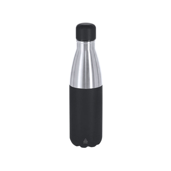 Thermische fles van 550 ml capaciteit, gemaakt van gerecycled roestvrij staal met dubbele wand. Het ontwerp combineert een zilveren afwerking met een schroefdop en een matte basis in een bijpassende kleur. BPA-vrij. Inclusief het label van gerecycled roestvrij staal.Roestvrij staal is een van de meest gevraagde materialen en kan bijna overal worden aangetroffen, van alledaagse producten tot grote constructies. Met talloze eigenschappen, waaronder duurzaamheid en een hoge mate van herbruikbaarheid, waardoor het een zeer gewaardeerde oplossing voor duurzaamheid is. Goed behandeld, maakt het het verkrijgen van nieuwe hulpbronnen van oneindig gebruik mogelijk.