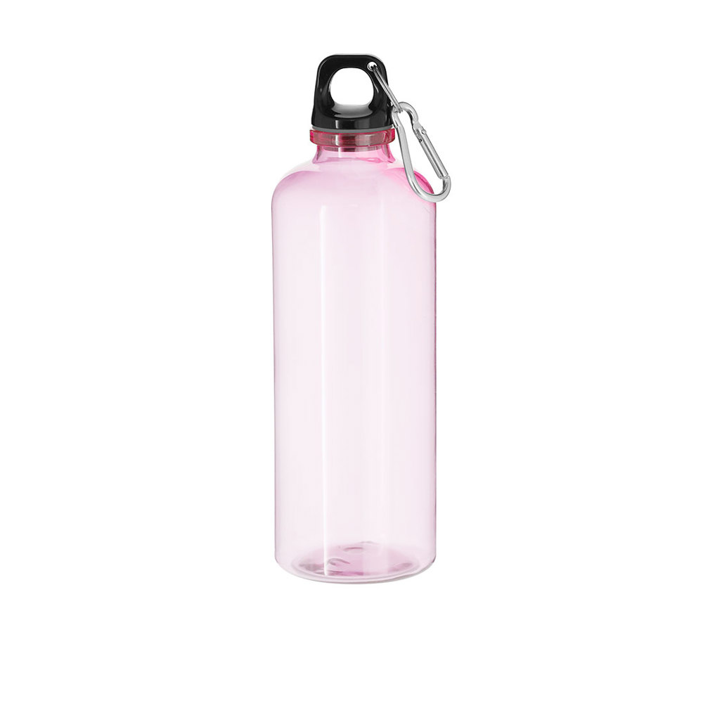 Fles gemaakt van stevig RPET-materiaal, met een capaciteit van 630 ml. Transparant lichaam en zwarte schroefdop voor optimale afsluiting. Inclusief metalen karabijnhaak voor gemakkelijk transport. BPA-vrij.The RPET-materiaal is gemaakt van gerecycled plastic, ter bevordering van de herbruikbaarheid van plasticafval en om de duurzaamheid van de planeet te helpen.