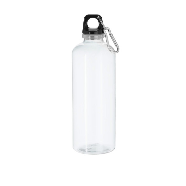 Fles gemaakt van stevig RPET-materiaal, met een capaciteit van 630 ml. Transparant lichaam en zwarte schroefdop voor optimale afsluiting. Inclusief metalen karabijnhaak voor gemakkelijk transport. BPA-vrij.The RPET-materiaal is gemaakt van gerecycled plastic, ter bevordering van de herbruikbaarheid van plasticafval en om de duurzaamheid van de planeet te helpen.