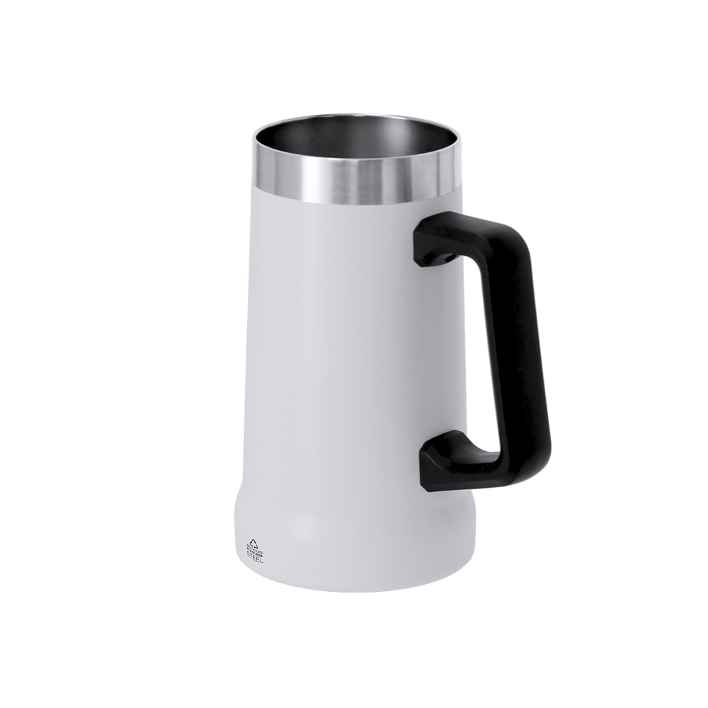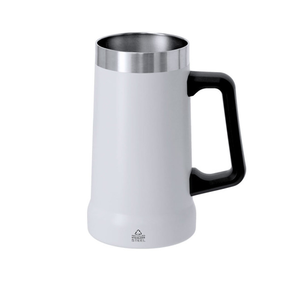 kan van 700 ml capaciteit, gemaakt van gerecycled roestvrij staal met dubbele wand. Bicolor design, met een ergonomische zwarte handgreep voor meer comfort in sterk PP. BPA-vrij. Label van gerecycled roestvrij staal gemarkeerd.Roestvrij staal is een van de meest gevraagde materialen en kan bijna overal worden aangetroffen, van alledaagse producten tot grote constructies. Met talloze eigenschappen, waaronder duurzaamheid en een hoge mate van herbruikbaarheid, waardoor het een zeer gewaardeerde oplossing voor duurzaamheid is. Goed behandeld, maakt het het verkrijgen van nieuwe hulpbronnen van oneindig gebruik mogelijk.