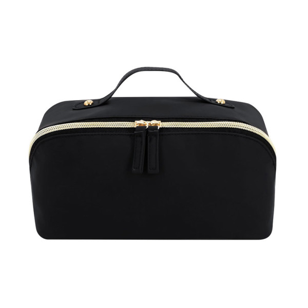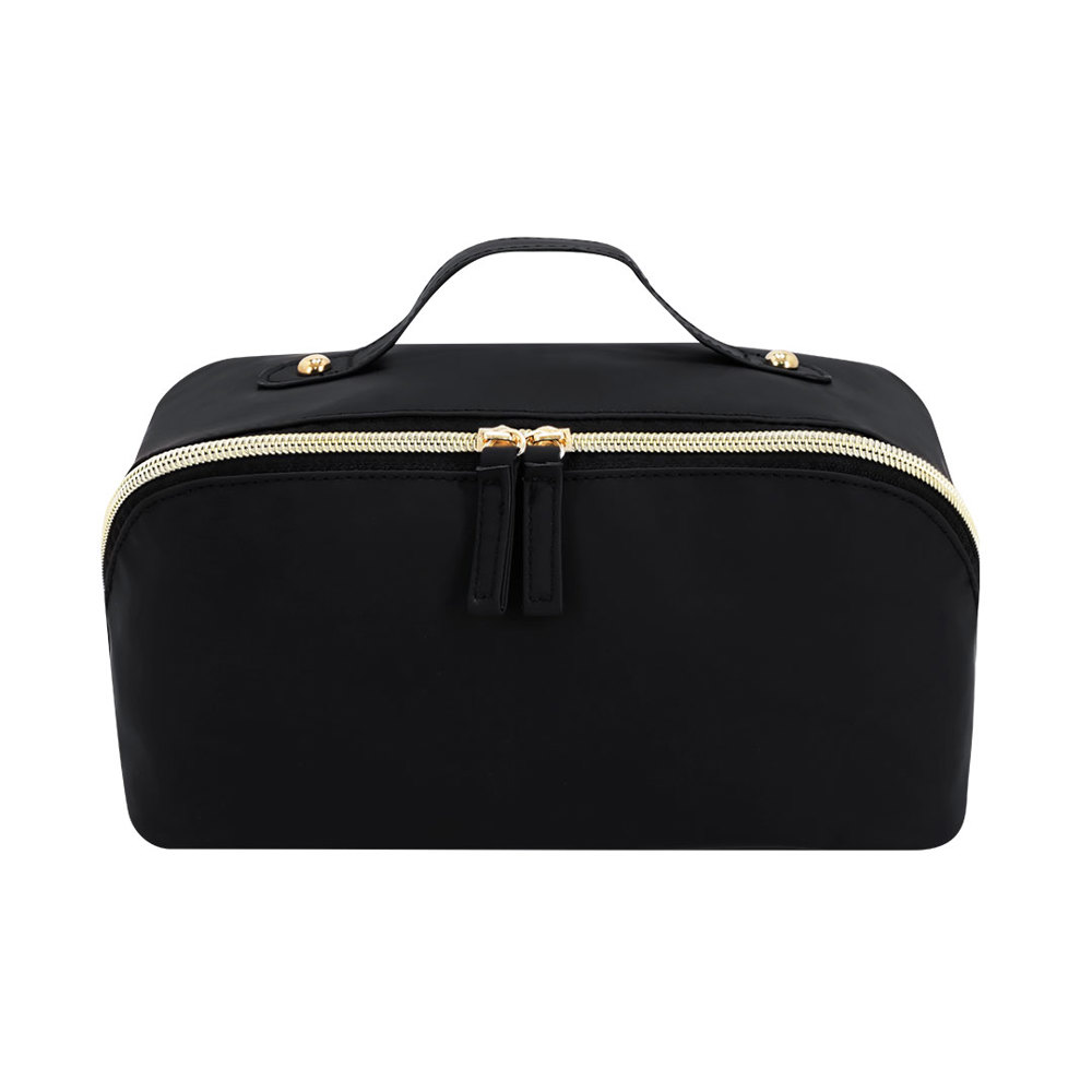 Etui in zachte PU, met hoofdcompartiment met ruime opening. Met bijpassende PU-trekkoorden en een ritssluiting in gouden kleur. Binnenin met een dubbele compartiment en een extra vak met ritssluiting.