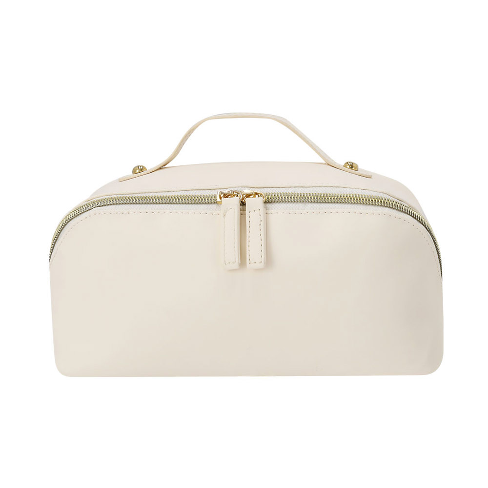 Etui in zachte PU, met hoofdcompartiment met ruime opening. Met bijpassende PU-trekkoorden en een ritssluiting in gouden kleur. Binnenin met een dubbele compartiment en een extra vak met ritssluiting.