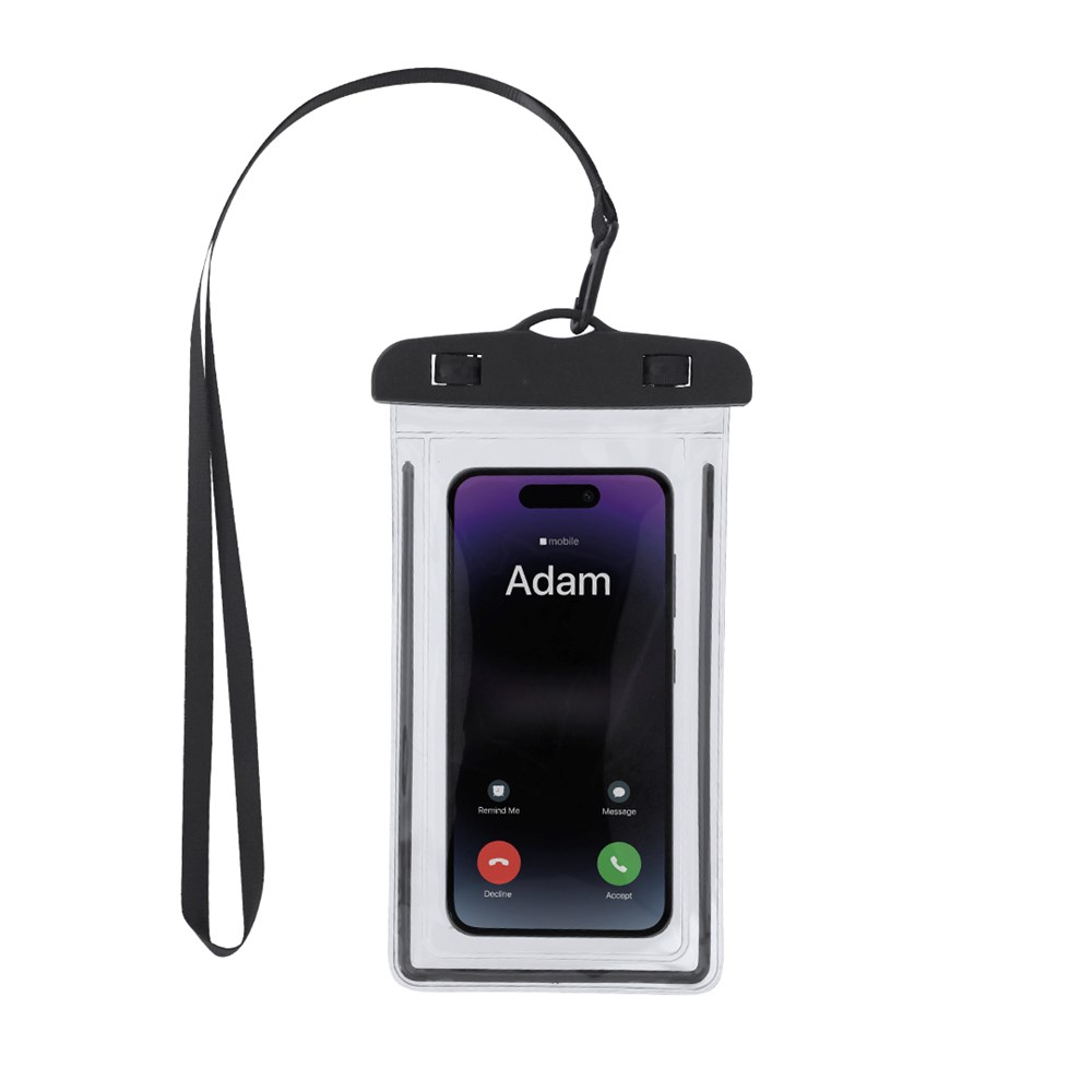 Waterdichte etui gemaakt van PVC, ontworpen met een tactiele functie om het gebruik van apparaten te vergemakkelijken. Met een veiligheidssysteem met een kliksluiting voor goede waterdichtheid. Compatibel met schermen tot 6,7 inch. Inclusief bijpassende koord en karabijnhaak voor meer gemak.