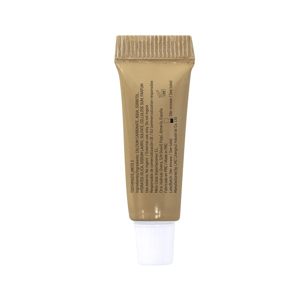 Tandenborstelset met tandenborstel en tandpasta. Inhoud:Tandenborstel gemaakt van bamboe.Tandpasta in een tube van 3 g, met schroefdop.In natuurlijke kleuren en gepresenteerd in een individuele doos van gerecycled karton.Materialen zoals bamboe bevorderen het gebruik van natuurlijke grondstoffen, waardoor de vervuilende emissies worden verminderd. Bovendien komt bamboe van een zeer veerkrachtige en veelzijdige plant, met een snelle groei en regeneratie, en is het een uitstekende vervanging voor traditioneel hout.