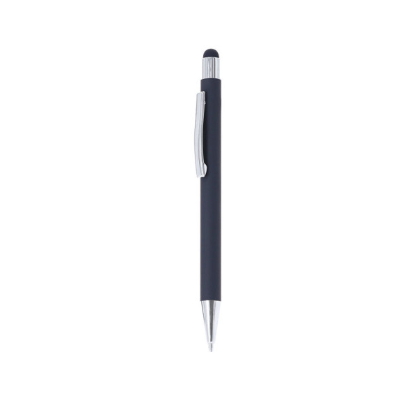 Balpenpunter met drukknopmechanisme gemaakt van gerecycled aluminium. Metalen clip met chroomafwerking, afgewerkt met een bijpassende punt. Rubberachtige afwerking, speciaal ontworpen voor lasergravure. Label van gerecycled aluminium aan de bovenkant van de pen. Van jumbo-cartouche en in blauwe inkt. Gerecycled aluminium is een materiaal met bijna eindeloze recyclagemogelijkheden, zonder verlies van oorspronkelijke eigenschappen en verbruikt minder energie in dit proces.GRS-certificering (Global Recycled Standard / Global Recycled Standard), die de gerecycleerde oorsprong van het gebruikte materiaal voor de fabricage van het product garandeert.