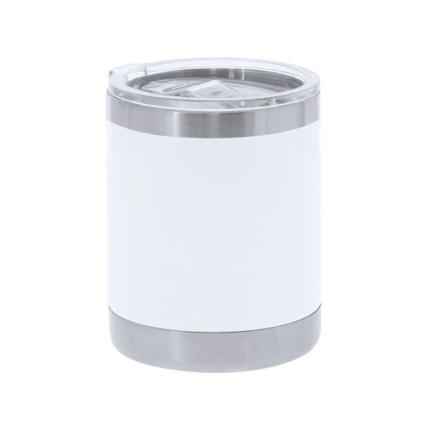 Tumbler gemaakt van gerecycled RVS met dubbele wand en een capaciteit van 380ml. Bijzonder ontworpen voor sublimatiebedrukking, met een glanzende witte afwerking. Met een gemakkelijk te openen doseerder op de deksel, vrij van BPA. Ideaal om op je bureau, tafel of op elke oppervlakte te genieten van je favoriete drank.