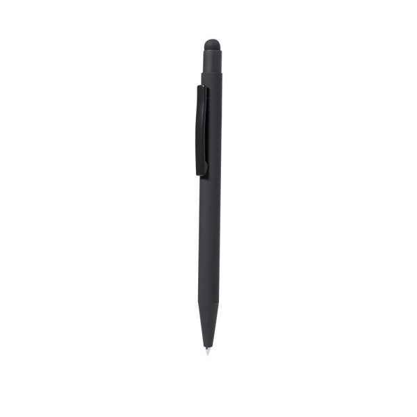 Aanraakhulpmiddel gemaakt van aluminium. Met drukmechanisme, aanraakpunt en metalen clip passend bij de behuizing. Behuizing met rubberen afwerking, speciaal ontworpen voor laserbedrukking. Jumbo cartridge met blauwe inkt.