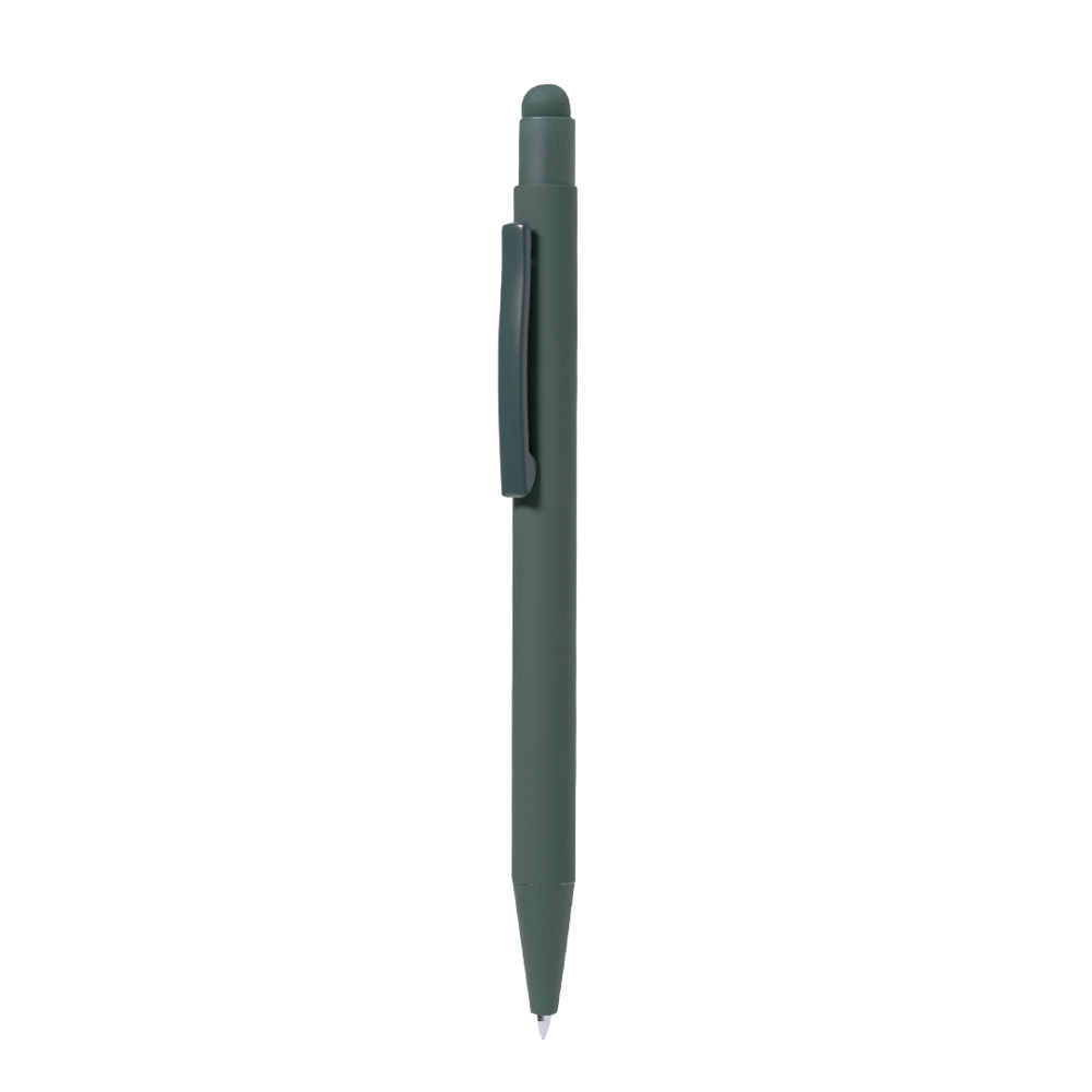 Aanraakhulpmiddel gemaakt van aluminium. Met drukmechanisme, aanraakpunt en metalen clip passend bij de behuizing. Behuizing met rubberen afwerking, speciaal ontworpen voor laserbedrukking. Jumbo cartridge met blauwe inkt.