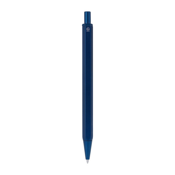 Elegante aanraakhulpmiddel gemaakt van gerecycled aluminium. Behuizing met een elegante hexagonale vorm. Met drukmechanisme gemaakt van gerecycled ABS en met blauwe inkt. Met een herkenbaar logo van gerecycled aluminium gemarkeerd op de behuizing.Gerecycled aluminium is een materiaal met bijna oneindige recyclingmogelijkheden, zonder de oorspronkelijke eigenschappen te verliezen en met minder energieverbruik in dit proces.GRS-certificering (Global Recycled Standard), die de gerecycleerde oorsprong van het gebruikte materiaal garandeert voor het vervaardigen van het product.RABS is een zeer recyclebare plastic met hoge weerstand en heeft vele toepassingen die het een eco-vriendelijke oplossing maken. Met RCS-certificering, die de gerecycleerde oorsprong waarborgt en met het RABS-logo gegraveerd.