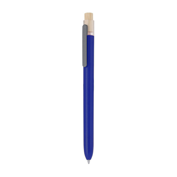 Balpen gemaakt van RABS. Heeft een metalen clip en een drukmechanisme gemaakt van bamboe. Met blauwe inkt. RABS-label aan de bovenkant van de pen.RABS is een zeer recyclebare plastic met hoge weerstand en heeft vele toepassingen die het een eco-vriendelijke oplossing maken.