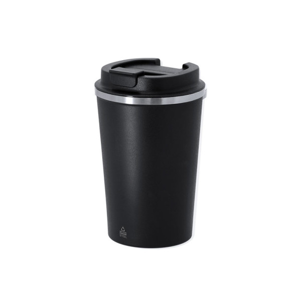 Tumbler gemaakt van gerecycled RVS met dubbele wand en 350ml capaciteit. Met dubbele wand voor de beste en meest duurzame temperatuurbehoud en een binnenkant met keramische coating, geschikt voor koolzuurhoudende dranken. Voorzien van een doseerder op de zwarte deksel, ontworpen om lekkages te voorkomen en vrij van BPA. Met het label van gerecycled RVS.RVS is een van de meest gevraagde materialen en kan bijna overal worden aangetroffen, van dagelijkse gebruiksproducten tot grote constructies. Met tal van eigenschappen, waaronder duurzaamheid en een hoge mate van herbruikbaarheid, is het een zeer gewaardeerde optie voor duurzaamheidsoplossingen. Correct behandeld, maakt het het mogelijk om nieuwe bronnen van eindeloos gebruik te verkrijgen.
