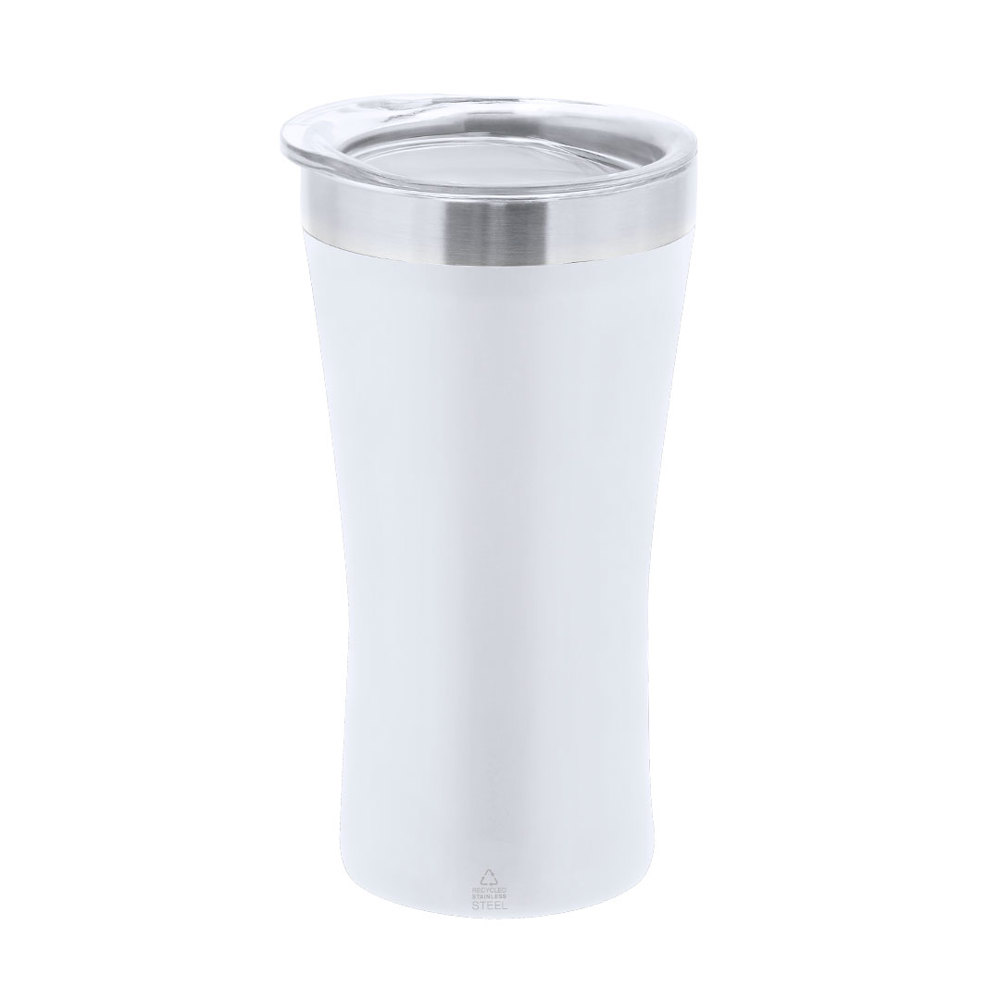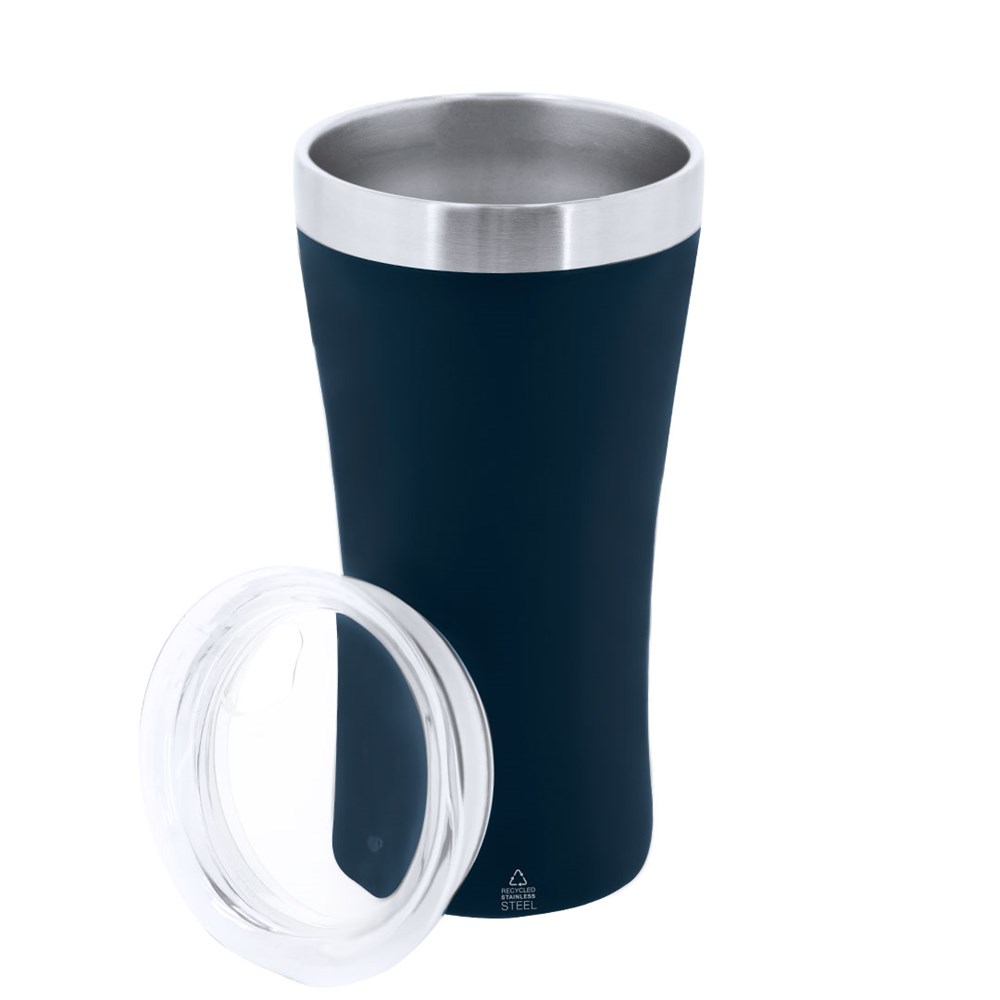 Thermische beker gemaakt van gerecycled roestvrij staal met dubbele wand en een capaciteit van 150 ml. Buitenaf in satijnen afwerking en binnenin in staafstaalafwerking. Inclusief deksel met transparante druksluiting, met doseerder en vrij van BPA. Ideaal om op je bureau, tafel of op ieder oppervlak te zetten om rustig te genieten van je favoriete drank. Met recycled roestvrijstaal logo.Roestvrij staal is een van de meest gevraagde materialen en kan bijna overal worden gevonden, van dagelijks gebruik tot grote constructies. Met talloze eigenschappen, waaronder duurzaamheid en een hoge herbruikbaarheid, wat het een gewaardeerde optie maakt in duurzame oplossingen. Wanneer het goed behandeld wordt, levert het nieuwe en eindeloos herbruikbare grondstoffen op.