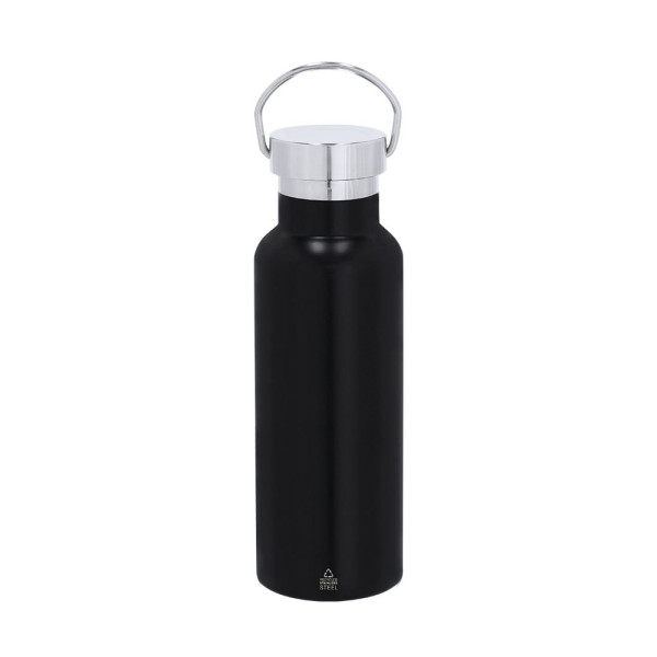 RVS thermosfles van 500 ml capaciteit. Met dubbele wand voor beter en duurzamer temperatuurbehoud en een keramische coating aan de binnenkant, geschikt voor koolzuurhoudende dranken. Schroefdop met stevig handvat in gepolijst staal. Met een kenmerk van Gerecycled RVS.RVS is een van de meest gevraagde materialen en kan bijna overal worden aangetroffen, van dagelijkse gebruiksproducten tot grote constructies. Met talloze eigenschappen, waaronder duurzaamheid en een hoge mate van herbruikbaarheid, waarmee het een zeer gewaardeerde alternatief is in duurzaamheidsoplossingen. Correct behandeld, stelt het in staat om nieuwe bronnen van oneindig gebruik te verkrijgen.