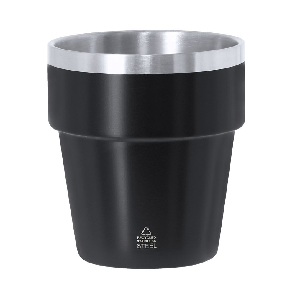 Thermosbeker gemaakt van gerecycled roestvrij staal met dubbele wand en een capaciteit van 250 ml. Afgewerkt in satijnglans en met rand en binnenkant in satijn roestvrij staal. Met logo van Gerecycled RVS.RVS is een van de meest gevraagde materialen en kan bijna overal worden aangetroffen, van dagelijkse gebruiksproducten tot grote constructies. Met talloze eigenschappen, waaronder duurzaamheid en een hoge mate van herbruikbaarheid, waarmee het een zeer gewaardeerde alternatief is in duurzaamheidsoplossingen. Correct behandeld, stelt het in staat om nieuwe bronnen van oneindig gebruik te verkrijgen.