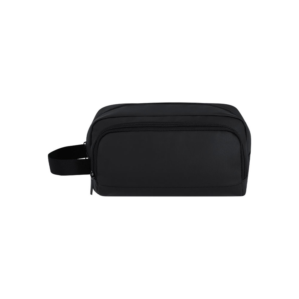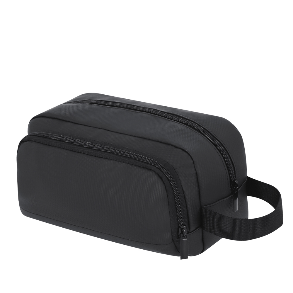 Multi-purpose toilettas in zacht PU. Hoofdvak en voorkant vak, met ritsen en metalen trekker. En praktische handgreep voor comfortabel transport.