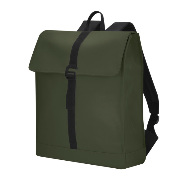 Rugzak gemaakt van zacht PU. Met hoofdcompartiment en gespslot. Interieur met hoge capaciteit met een gewatteerd compartiment voor laptops tot 14 inch of tablets tot 10 inch. Gewatteerde rug en handvatten. Inclusief band voor trolley.