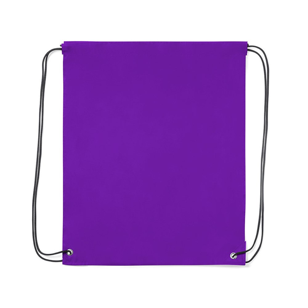 Touwrugzak van zacht polyester in een groot aantal kleuren. Met zwarte zelfborgende koorden, verstevigde kunstlederen hoeken in bijpassende kleur en sterke metalen ringen. Speciale witte kleur is voor sublimatie.