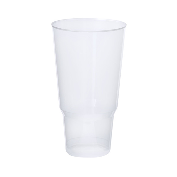 Beker met een inhoud van 1,2 liter in duurzaam en flexibel PP-materiaal. Herbruikbaar en in een doorschijnende afwerking, met een speciale vorm aan de basis voor onderzetters.