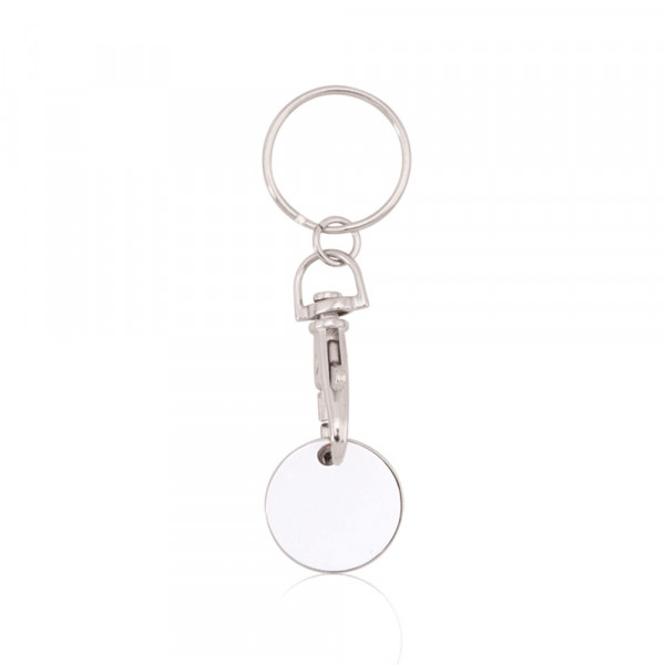 Metalen munt sleutelhanger in leuk ontwerp in gevarieerde kleuren met afneembare karabijnhaak met sluiting.