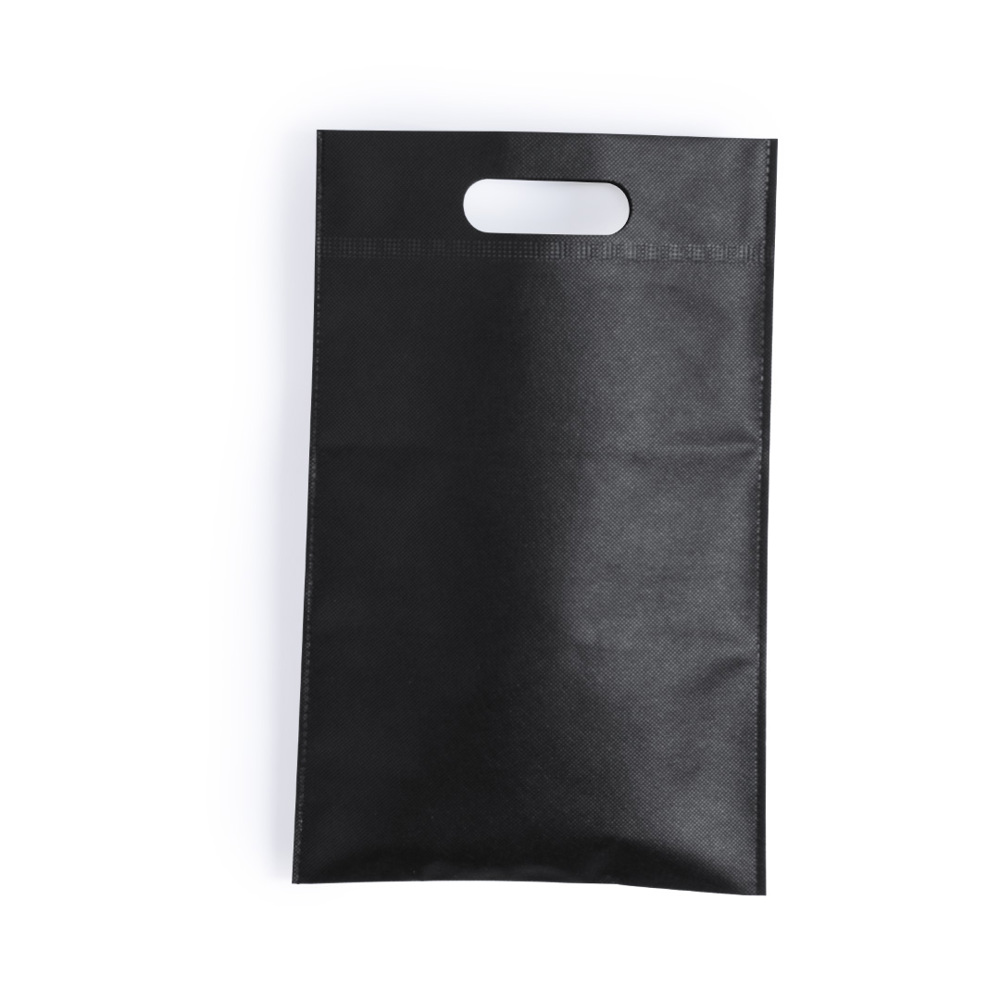 Non-woven tas van 80 g / m2 in zwarte kleur, speciaal ontworpen voor bijvoorbeeld schoenen. Met versterkt handvat.