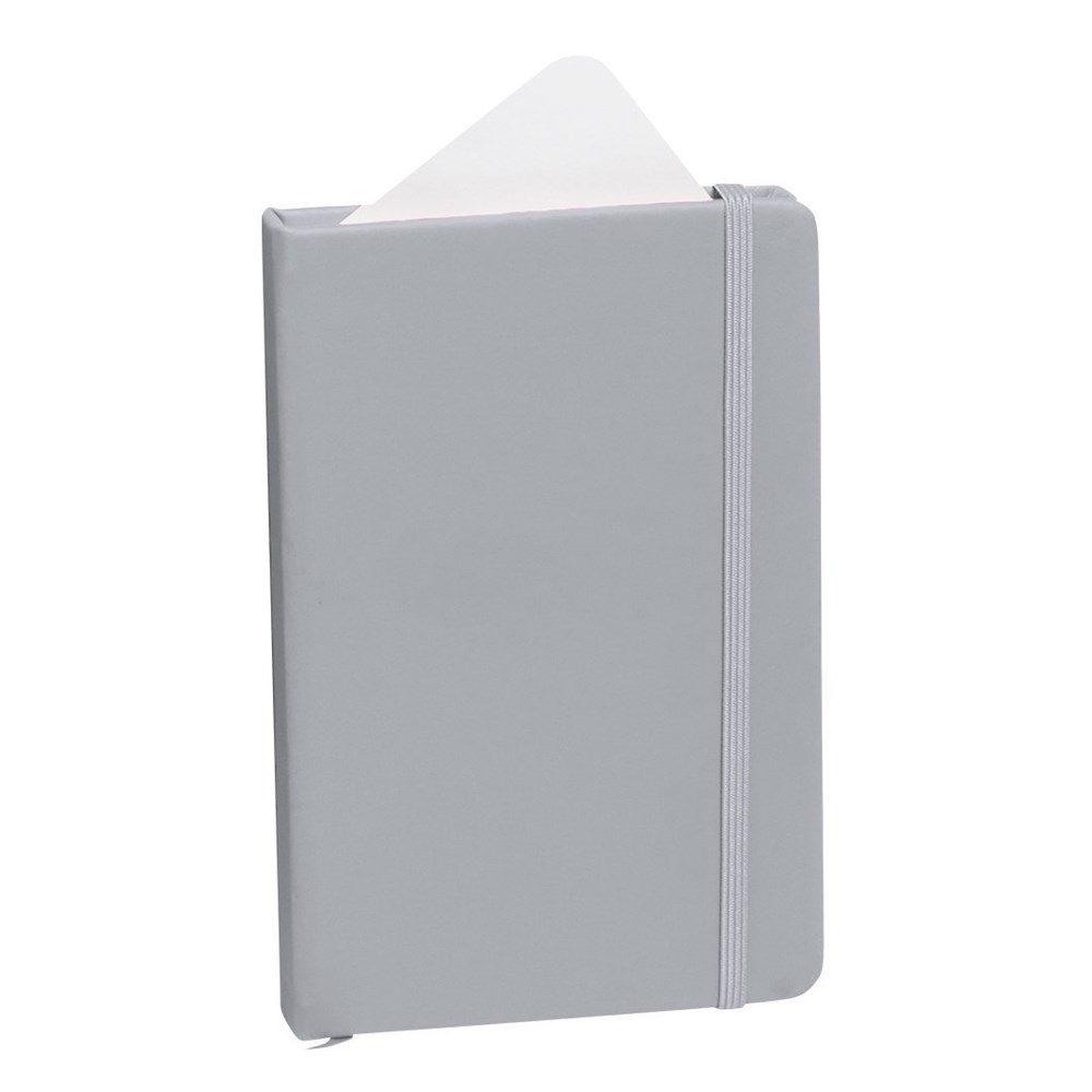 Notitieblok van imitatieleer met soft touch afwerking. Met harde kaft en bladwijzer in verschillende kleuren. Met 100 effen pagina's en bijpassende praktische elastische sluiting.
