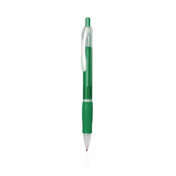 pen van duurzaam ABS met drukknopmechanisme. Origineel tweekleurig ontwerp met heldere en gevarieerde kleuren in een gladde afwerking, met bijpassende comfortgreep. Blauwe inkt.