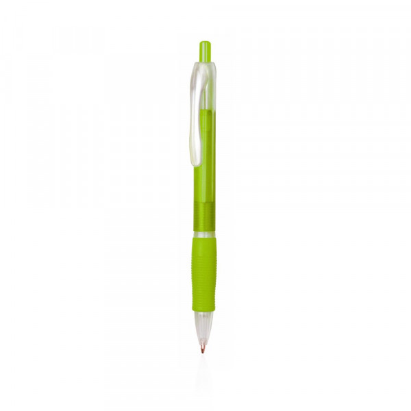 pen van duurzaam ABS met drukknopmechanisme. Origineel tweekleurig ontwerp met heldere en gevarieerde kleuren in een gladde afwerking, met bijpassende comfortgreep. Blauwe inkt.