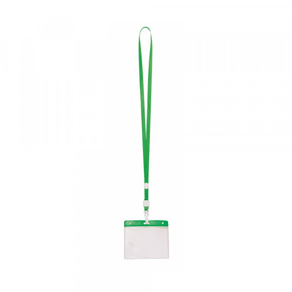 Identificatiehouder van PVC met bijpassende kleur lanyard in verschillende kleuren en met karabijnhaaksluiting. Ronde knop om op te printen.