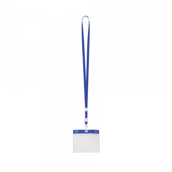 Identificatiehouder van PVC met bijpassende kleur lanyard in verschillende kleuren en met karabijnhaaksluiting. Ronde knop om op te printen.
