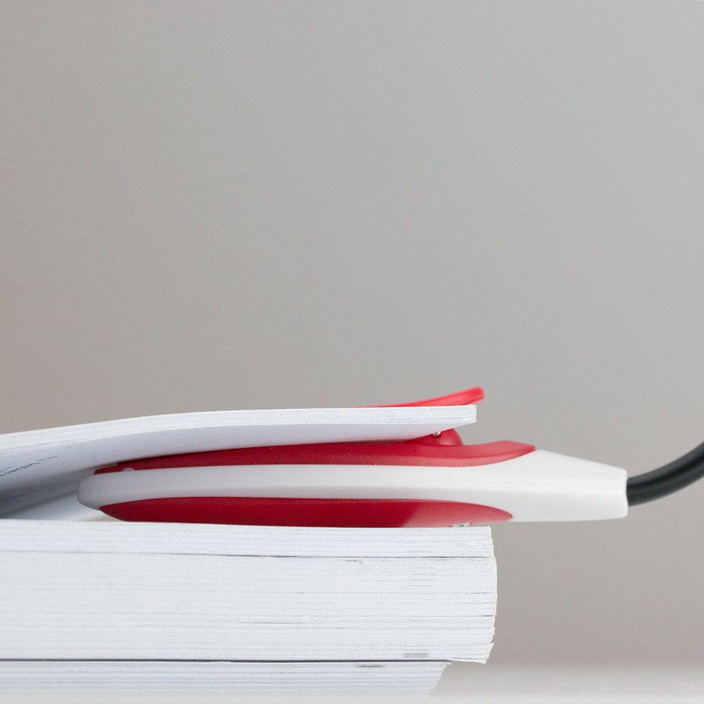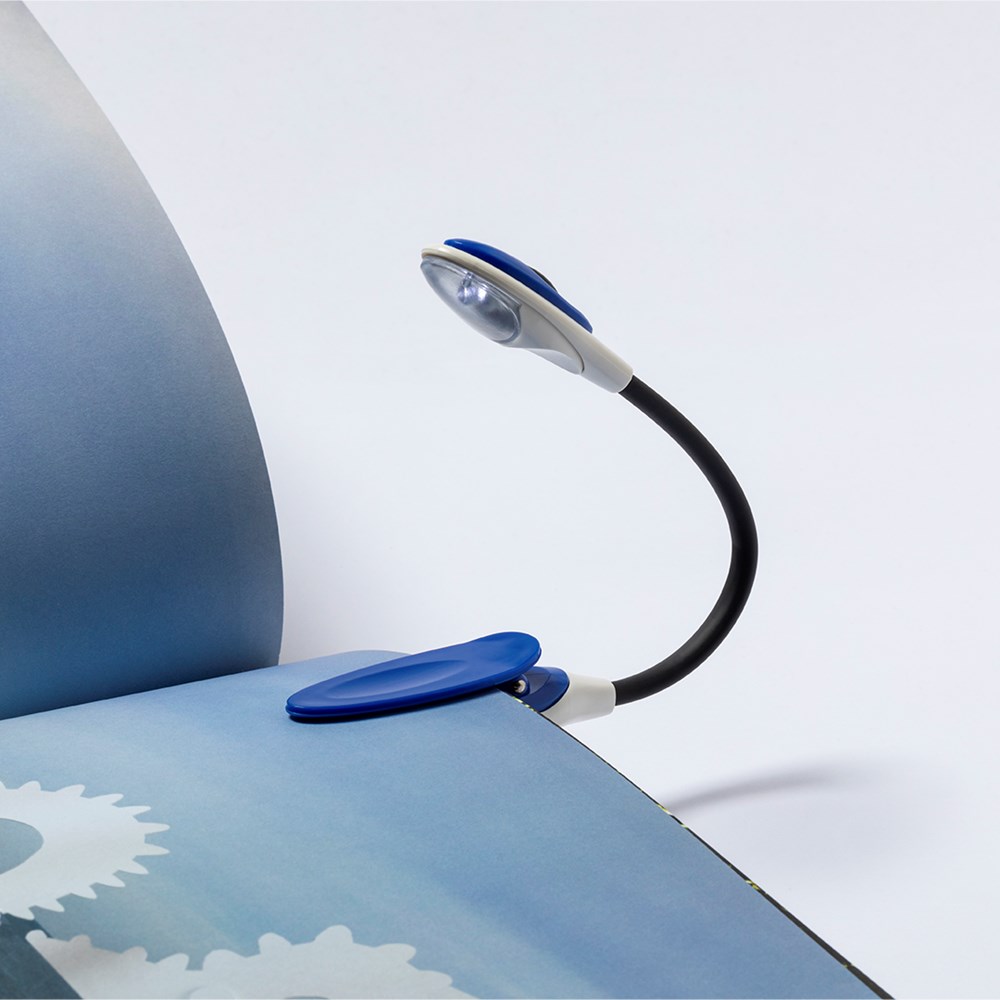 Tweekleurige LED-leeslamp. Met flexibel lichaam en comfortabele grijper. Gepresenteerd in een doos.