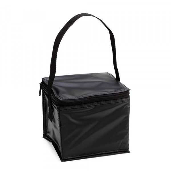 Cooler bag voor 4 blikjes van stevig PVC in verschillende kleuren. Isothermische binnenkant met aluminium afwerking. Met ritssluiting en handvat in bijpassende kleur.