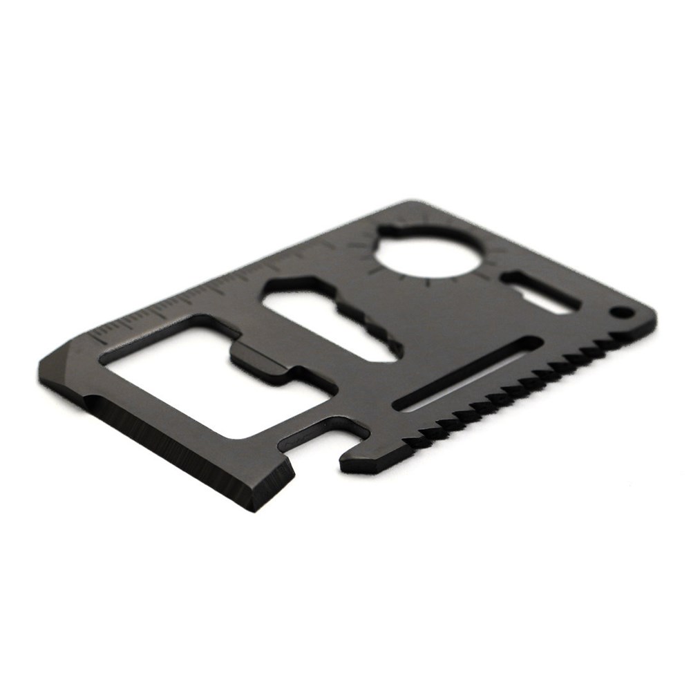 Multi-tool met stevig roestvrijstalen behuizing met 11 functies. Met blikopener, mes, schroevendraaier, liniaal, flesopener, steeksleutels, zaag en richtingaanwijzer. Gepresenteerd in stevige lederen tas.