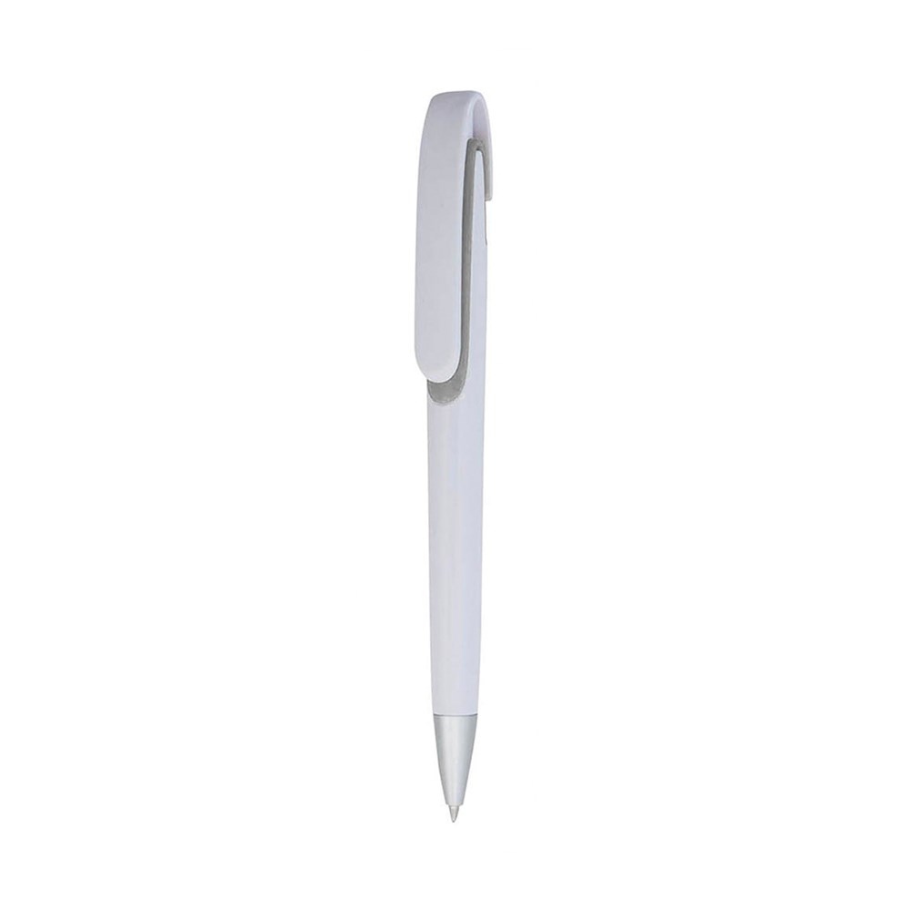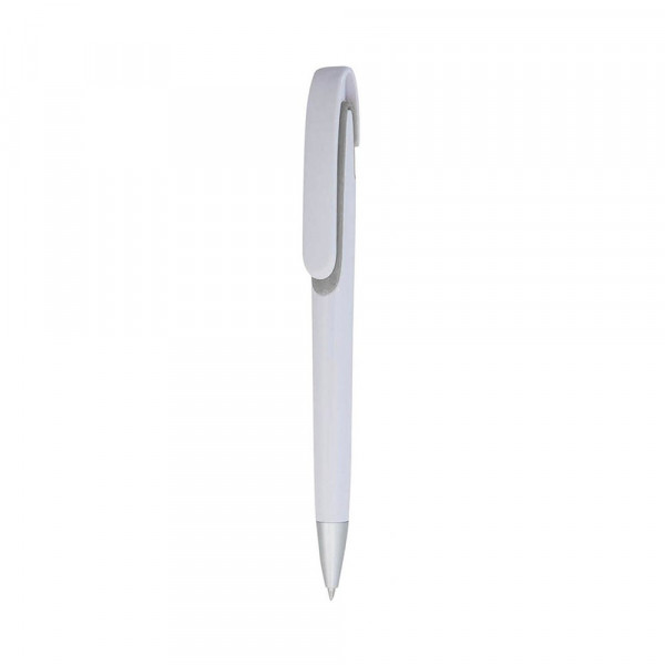 Balpen in gedurfd driekleurenontwerp met felgekleurde details en gladde body in effen wit. Met originele, bijpassende, gebogen clip en comfortabele grip. Blauwe inkt.