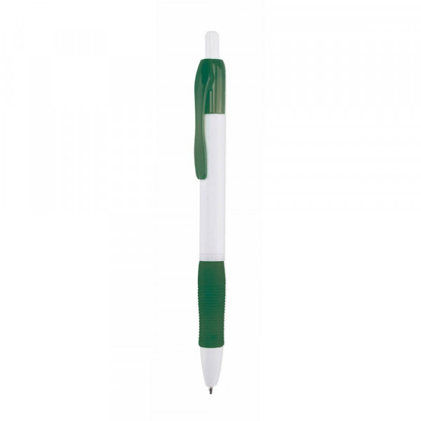Klassieke balpen met push-up mechanisme, in strak ontwerp en met massieve witte body met zachte afwerking. Met comfortabele grip en clip in bijpassende kleuren. Blauwe inkt.