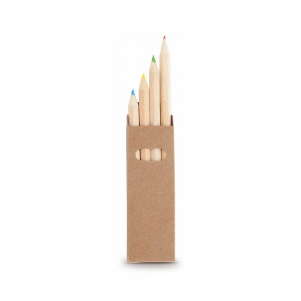 Nature line doos met 4 houten potloden. Set van 4 potloden met blauwe, gele, groene en rode stift...meer